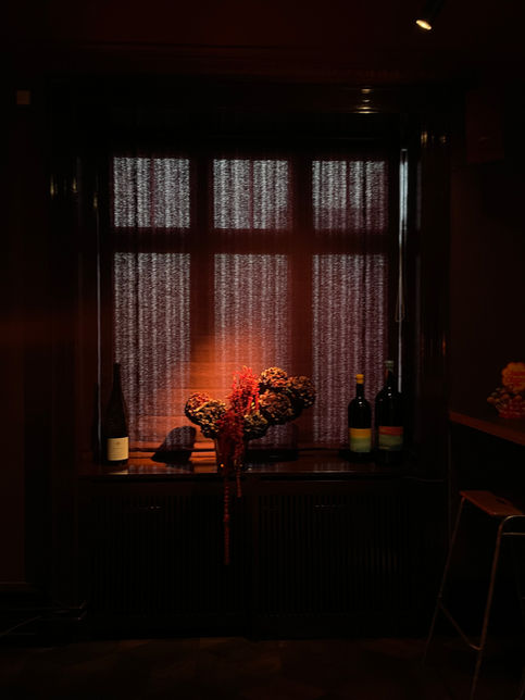 The space had to support a flexible programme: day-to-day bar service, guests sitting at both the bar and tables, occasional DJ sets and a small dance area when needed. It also had to accommodate pop-up dinners by other restaurants. For this, the prep kitchen is designed to transform into a temporary guest kitchen and the overall layout includes enough dining-style seating to make these events feasible.