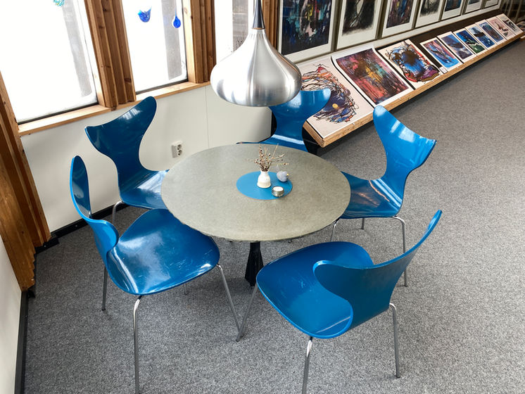 The Juhls Silver Gallery is an atelier, a home, a café, a workshop, a museum, an art gallery and a design shop in one building. The building is a adventure through Sápmi’s cultural landscape and Frank and Regine Juhls are telling it through architecture and interior ornamentation. It is a place that shows so much love and dedication and detail in every corner that it is impossible to take it all in in one visit. The house is designed by Regine and Frank themselves and grew over the years into the wonderland of shapes it is today. The forms are inspired by the arctic nature, how wind and snow and the flora around behave.